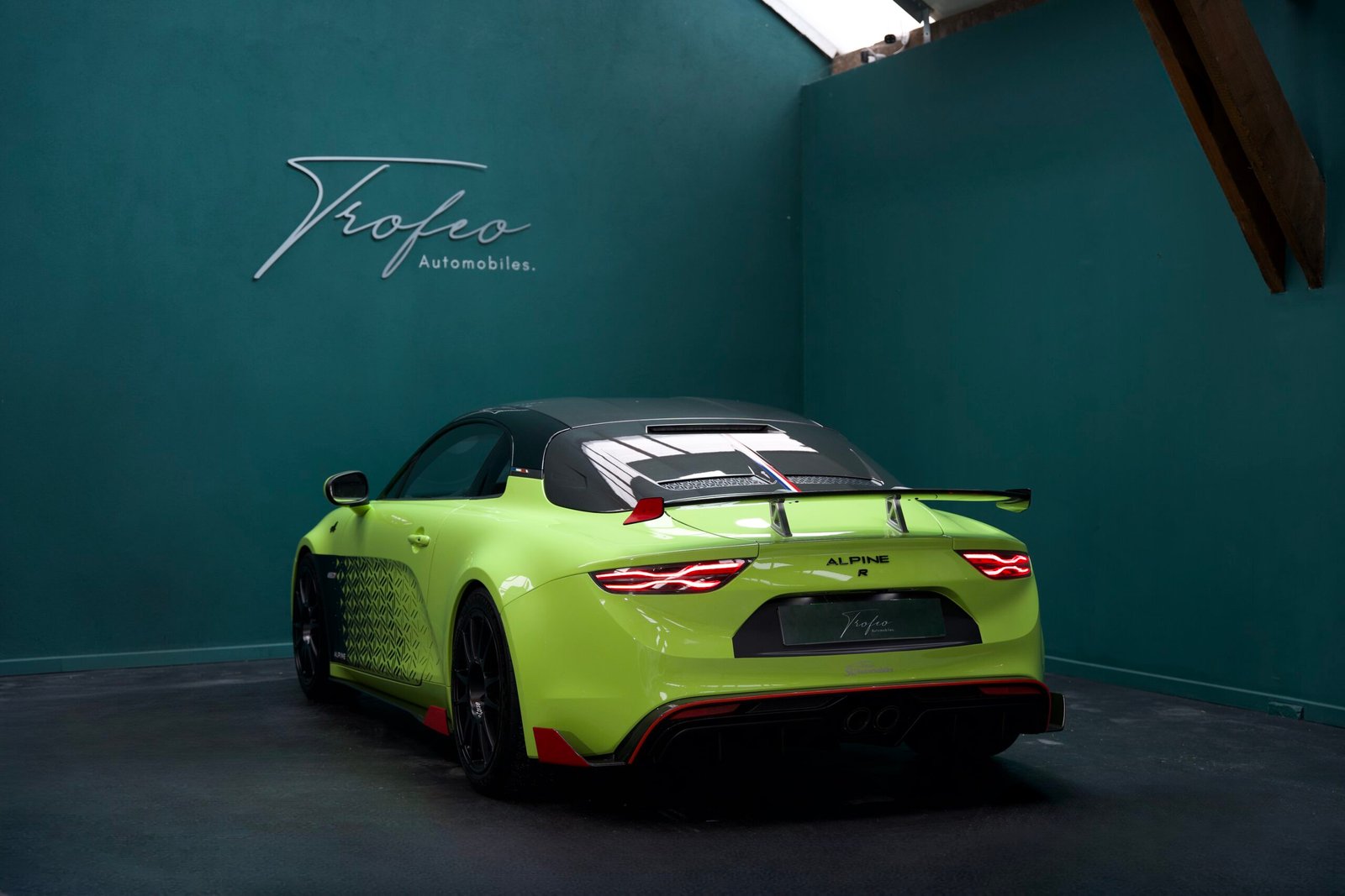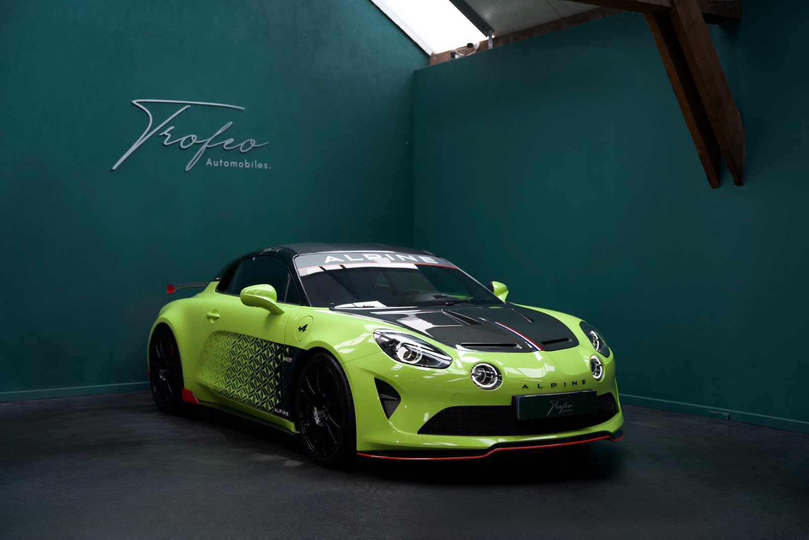 Trofeo Automobiles vous propose cette magnifique Alpine A110R 300CV dans sa magnifique teinte vert tilleul. Serie limité à 110 exemplaires.