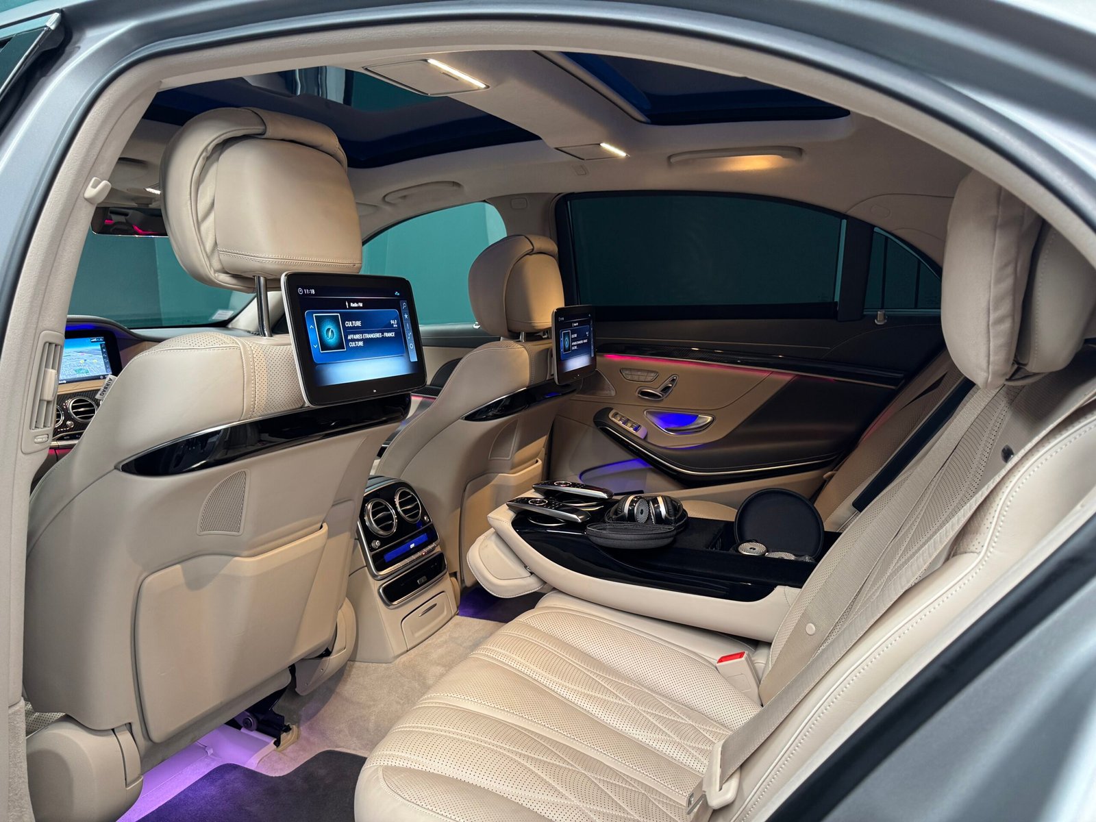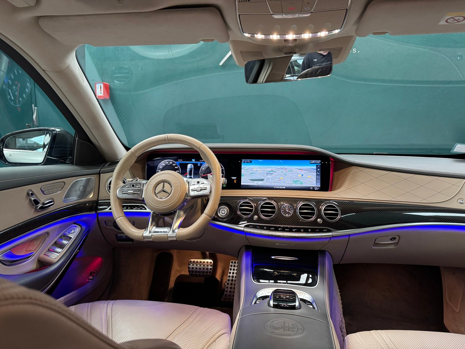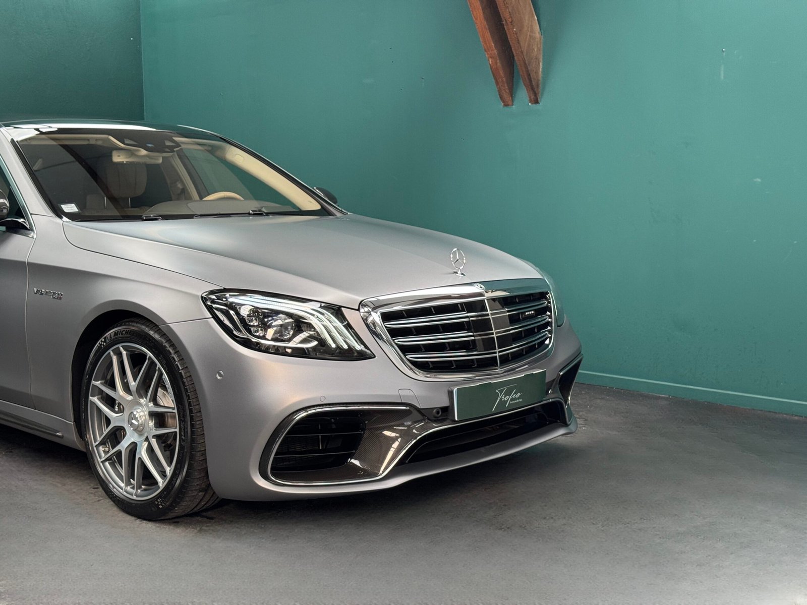 Trofeo Automobiles vous propose ce parfait exemplaire de Mercedes S63 AMG 4.0 612CV dans sa très rare teinte Magno Allanite Gris Mat.