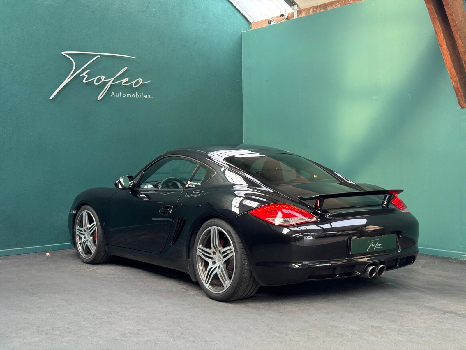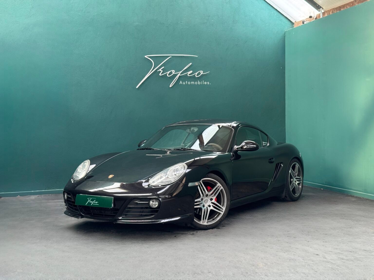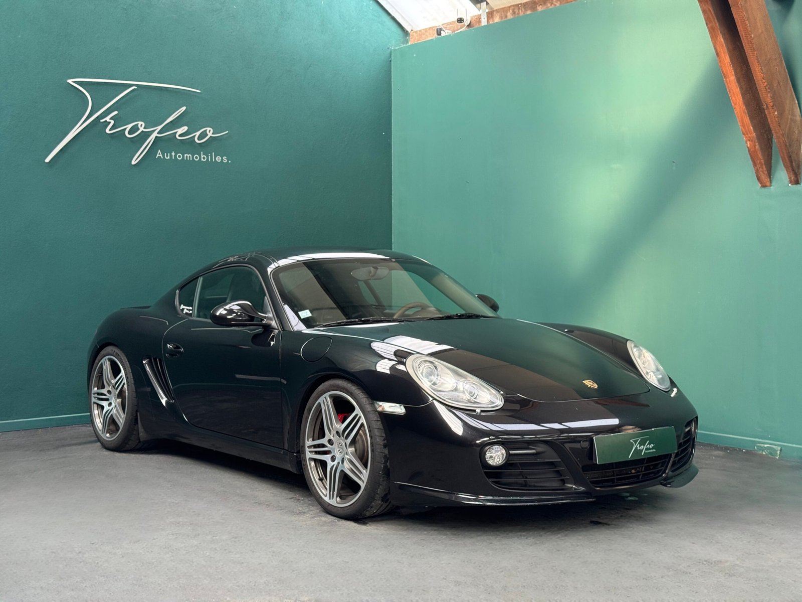 Trofeo Automobiles vous propose ce superbe exemplaire de Porsche Cayman S 987 (2) 3.4 320CV PDK noir métalisé avec un intérieur cuir noir.